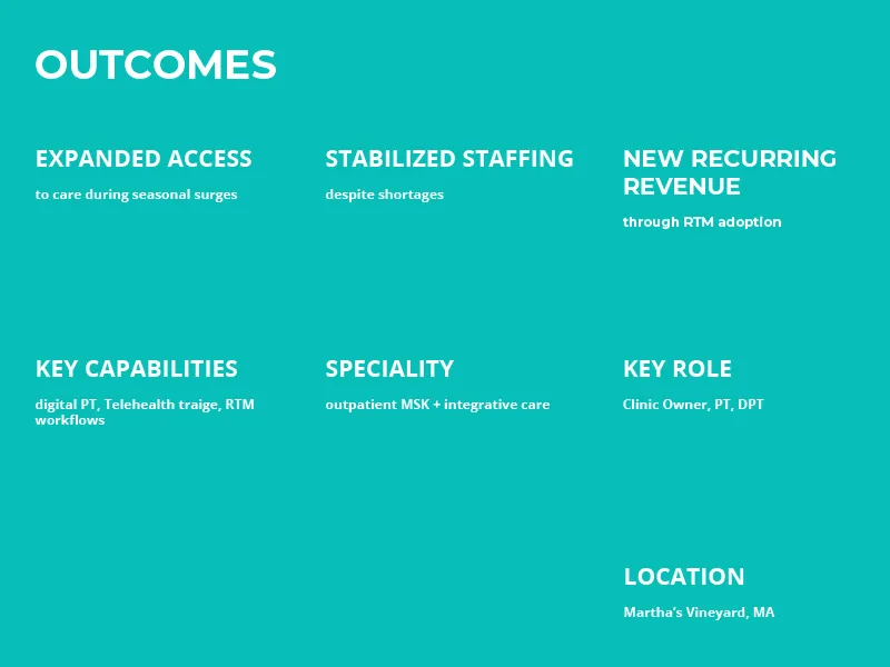 How Vineyard Complementary Medicine Scaled Care Beyond an Island With Digital PT & RTM Outcomes