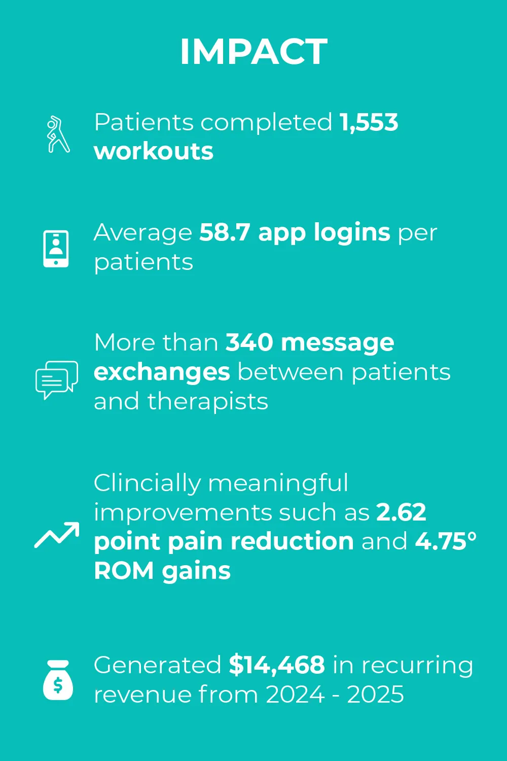 RTM created new flexibility for VCM’s clinicians as well. Therapists who moved off-island were able to continue treating patients virtually, while others took on RTM caseloads as supplemental income. RTM reduced pressure on onsite staff, maintained continuity during unpredictable seasons, and allowed clinicians to oversee patient progress without requiring additional in-person appointment slots.
